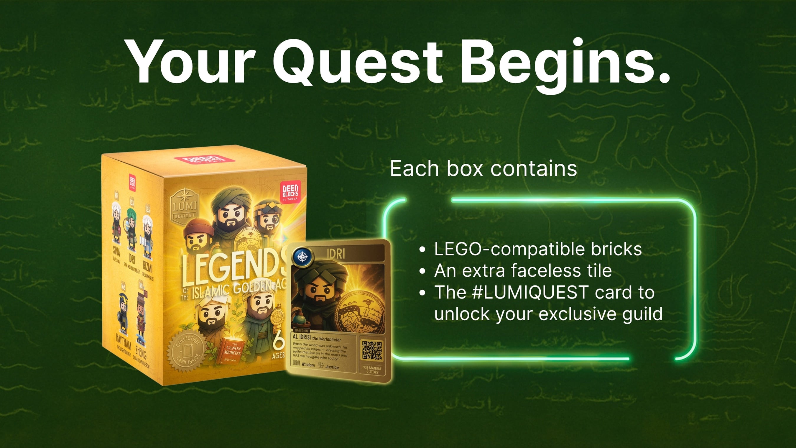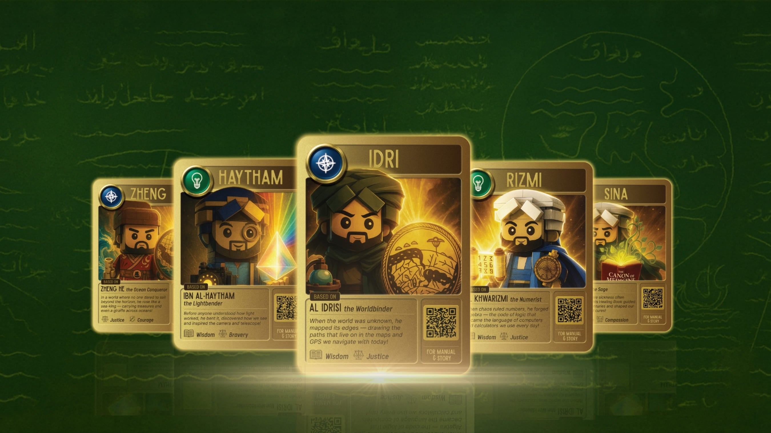Open the box, build the figure, then scan the QR to open a simple manual and a short profile about al-Idrisi. Clear wording helps kids remember the key points.