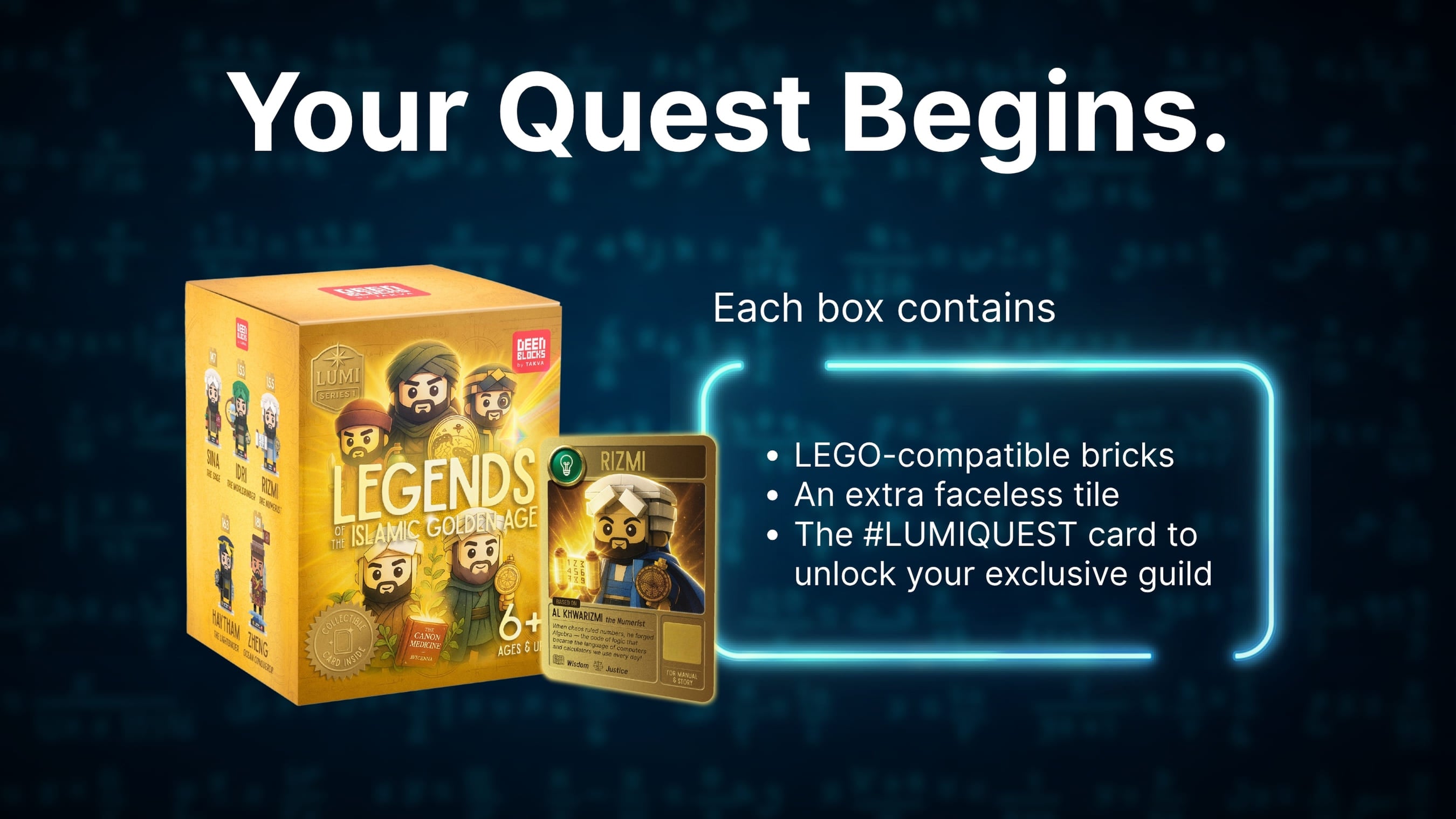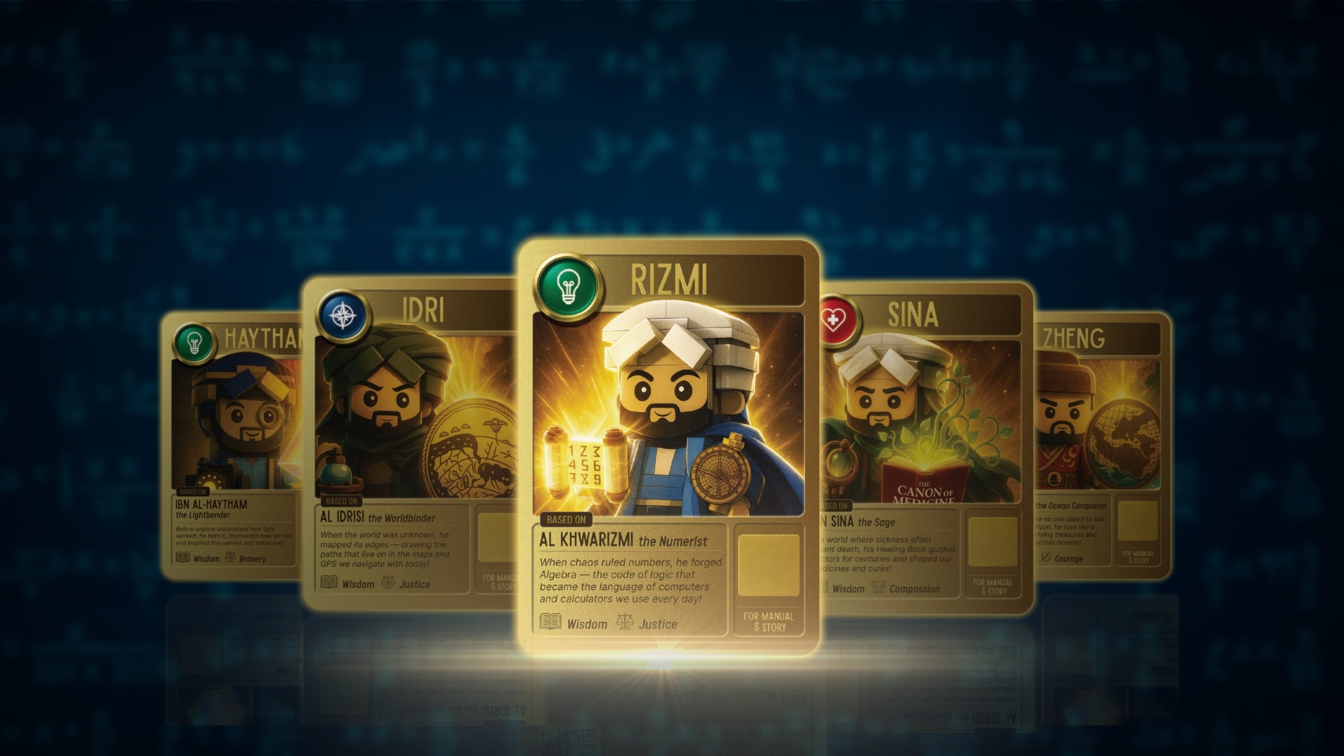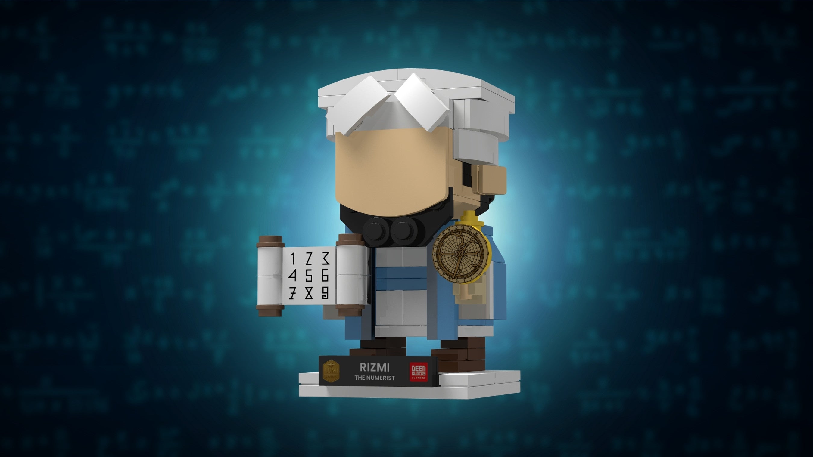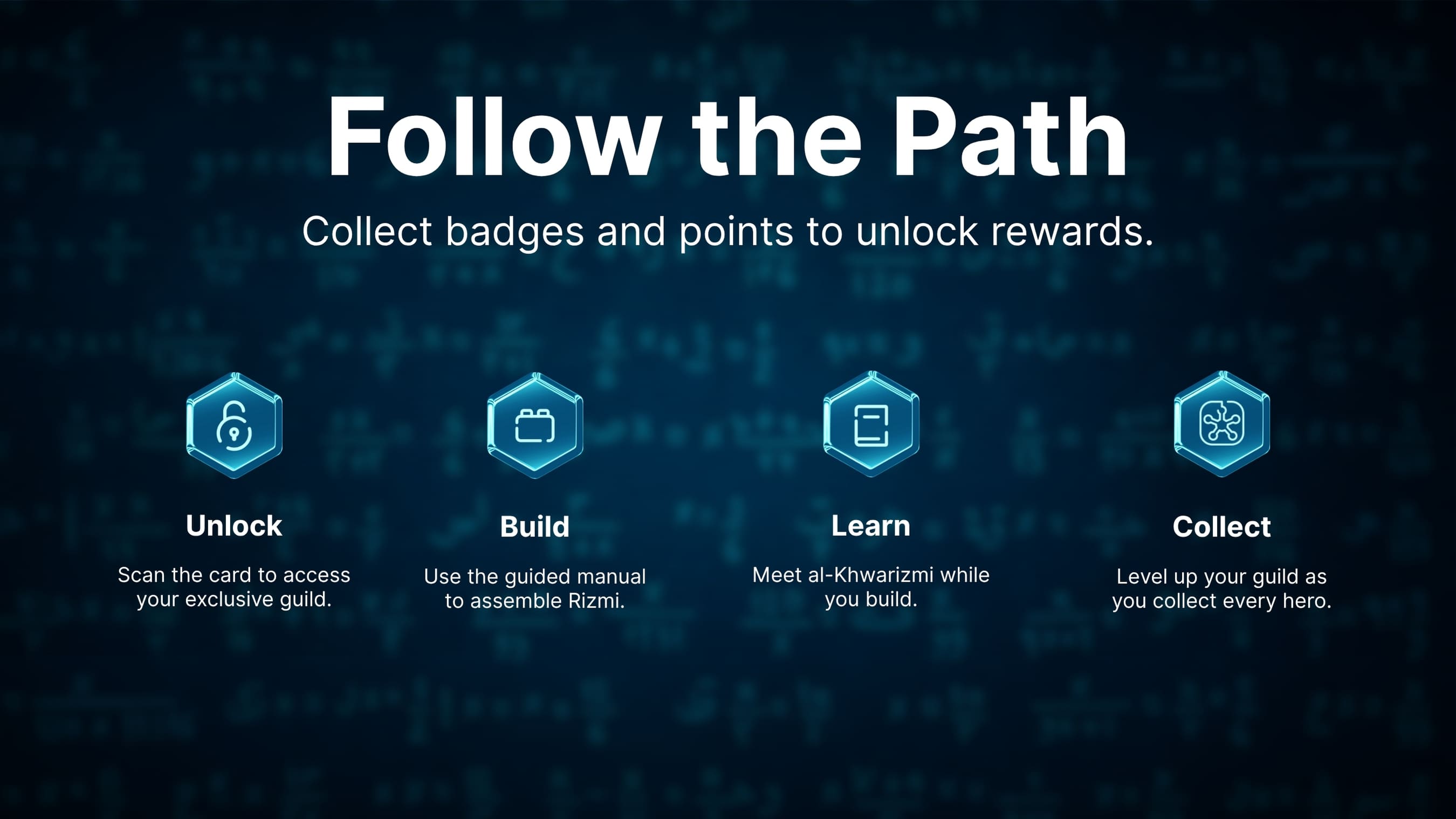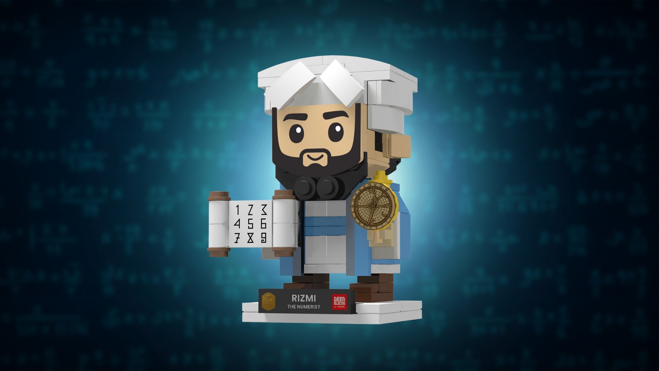Open the box, build the figure, then scan the QR to open a simple manual and a short profile about al-Khwarizmi. Clear wording helps kids remember the key points.